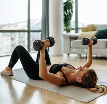 Perfect for strengthening your legs, glutes, and core stability.Glute Bridges (3 sets × 15 reps)