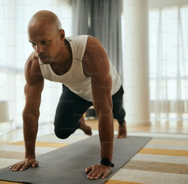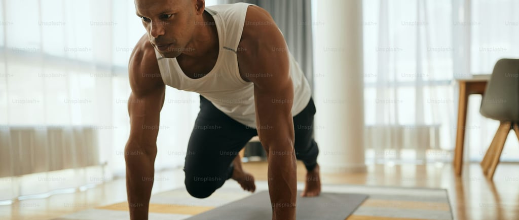Builds lower body power, stability, and balance with lateral movement.Plank Shoulder Taps (3 sets × 20 reps)