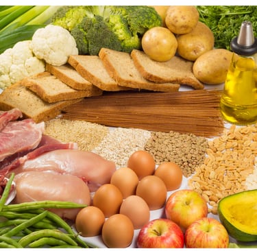 Healthy Fats: Unsaturated fats from olive oil, avocados, nuts, and seeds.
