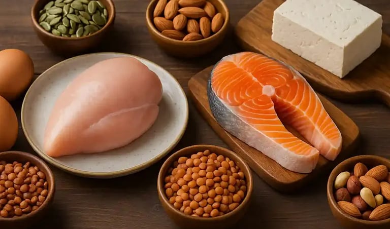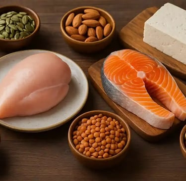 Plant-based: Lentils, chickpeas, tofu, quinoa, edamame, tempeh, nuts, and seeds.